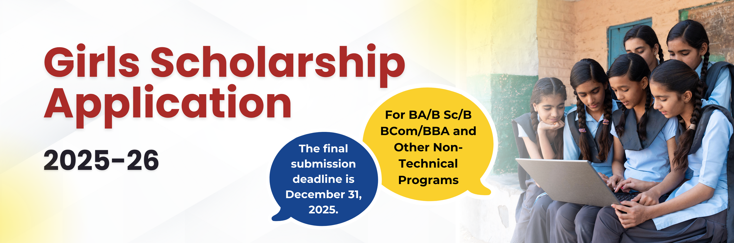 We are providing a special Girls Scholarship program, and 30% of the total scholarships are reserved for Girls. This initiative encourages academically talented girls from economically disadvantaged backgrounds to pursue their dreams and build successful careers in professional fields
